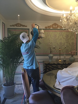 使用专用喷雾器喷雾TVOC涂层,主要针对室内挥发有机物异味的清除;